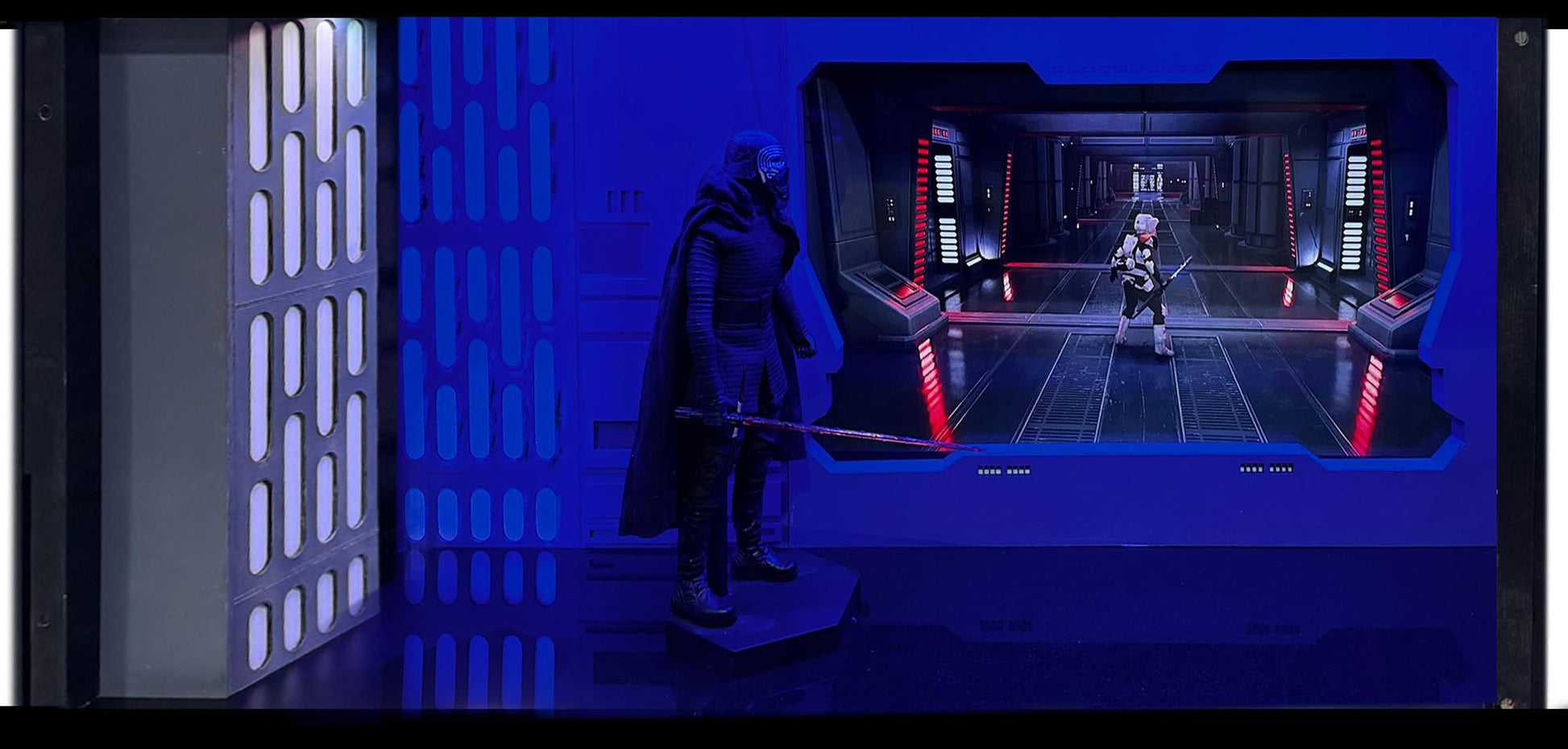Crafted with laser-cut MDF, themed detailing, and integrated LED lighting, this display features a window-style portal with a custom animated video loop that simulates deep space activity. The entire unit is preassembled and ready to showcase your collection right out of the box.
